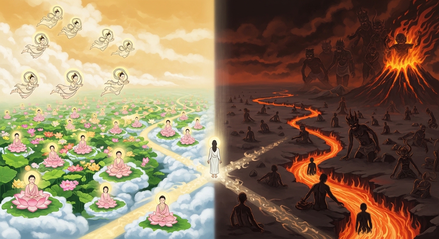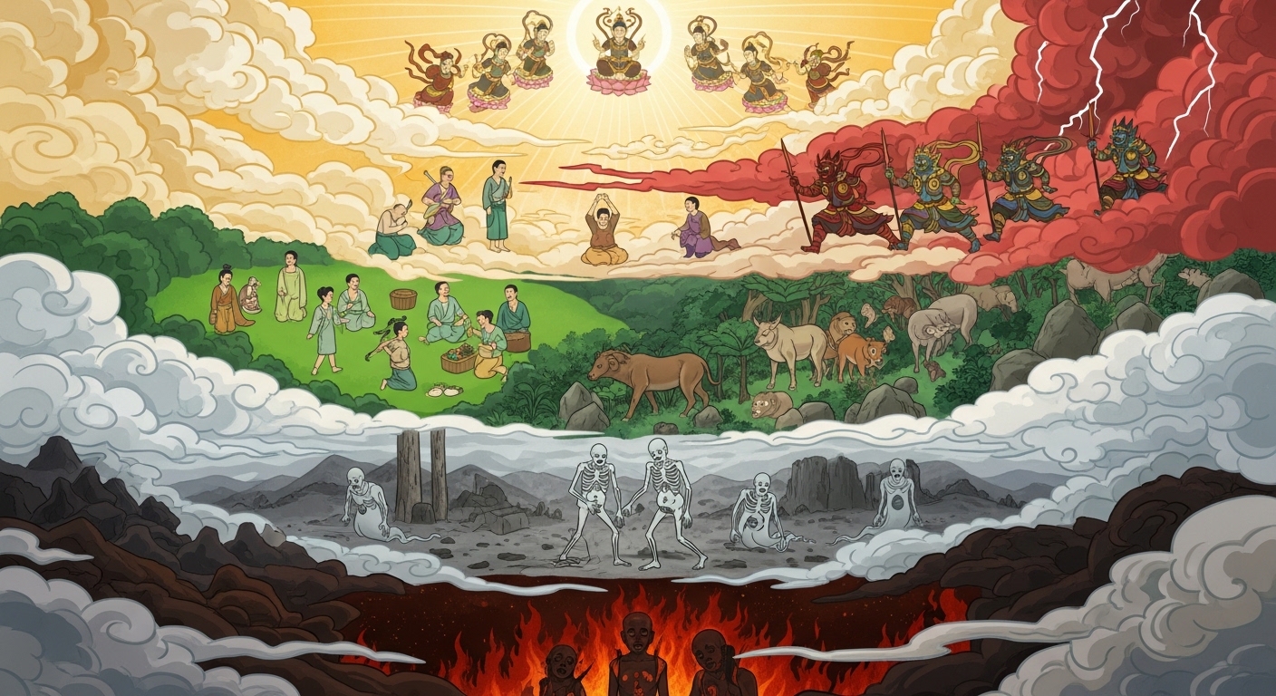 지옥조차도 영원한 형벌의 공간이 아닙니다. 업보에 따라 일정한 시간이 지나면, 다시 다른 세계로 태어날 수 있습니다. 중요한 것은 두려움이 아니라 지금 이 삶의 선택입니다.