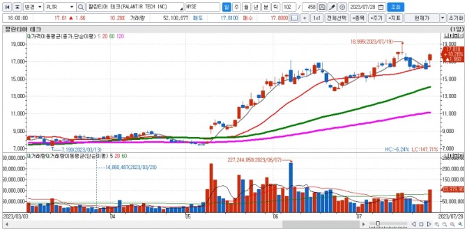 최근 팔란티어의 주가는 눈에 띄는 상승세를 보이고 있습니다. 현재 주가는 약 $17.20로, 연초 대비 169.17% 상승했습니다.